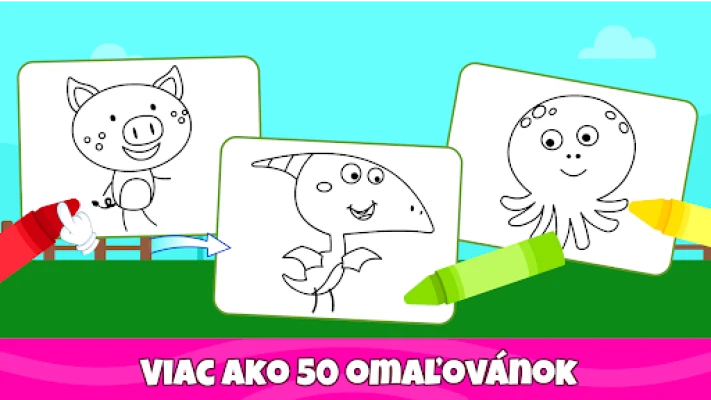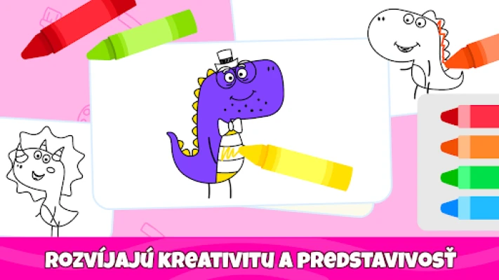 Vstúpte do fascinujúceho sveta farieb a nekonečnej zábavy s našou jedinečnou vzdelávacou aplikáciou, špeciálne navrhnutou pre najmenších. Táto interaktívna platforma pre deti vo veku od 1 do 5 rokov transformuje učenie na radostný objav. Pomáha rozvíjať detskú predstavivosť, jemnú motoriku a cit pre estetiku, zatiaľ čo sa vaši malí umelci hrajú a tvoria. Súčasne sa hravou formou zoznamujú s farbami, tvarmi, fascinujúcim svetom zvierat, rôznymi dopravnými prostriedkami a množstvom ďalších podnetných tém, ktoré stimulujú ich zvedavosť a chuť objavovať.