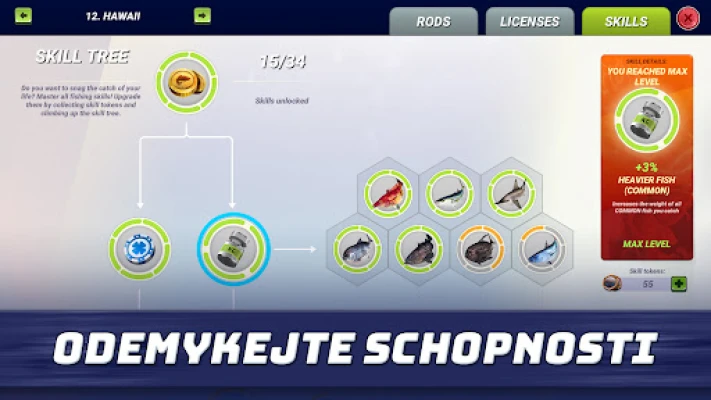 Objavte stovky rôznych druhov rýb, od bežných kaprov a ostriežov až po impozantné sumce, ktoré čakajú na vaše nízkoúrovňové nástrahy. S postupom v hre a objavovaním exotickejších lokalít sa vybavíte vzácnymi návnadami, ktoré vám umožnia skrotiť majestátne arapaimy, útočné žraloky či iné morské obludy. Aký bude váš najväčší úlovok? Každé nové miesto prináša jedinečnú výzvu a šancu na rekordný úlovok.