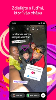 Vyjadrite sa s ľahkosťou a kreativitou. Zdieľajte prchavé okamihy s Priateľskými príbehmi a poznámkami, ktoré zmiznú po jednom dni, alebo sa ponorte do autentických rozhovorov v skupinových čatoch s vašimi najbližšími. Premeňte svoje zážitky na živé spomienky v Kanáli alebo nechajte váš život rozprávať príbeh prostredníctvom krátkych, podmanivých videí v Reels. Vylepšite svoje príspevky exkluzívnymi šablónami, hudobnými podkladmi, nálepkami a filtrami, aby každý moment rezonoval s vaším jedinečným štýlom.