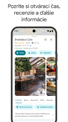 Objavujte svet s dôverou a cíťte sa ako miestni, vďaka podpore obrovskej komunity vyše pol miliardy používateľov, ktorí prispievajú k neustálej aktualizácii a presnosti dát. Zistite pred príchodom, aká je aktuálna obsadenosť miesta, a vyhnite sa tak davom. Využite inovatívne vizuálne navádzanie v rozšírenej realite, ktoré vám ukáže pešiu trasu priamo vo vašom prostredí. Filtrujte reštaurácie podľa kuchyne, otváracích hodín, ceny, hodnotenia a mnohých ďalších kritérií. Máte otázky ohľadom konkrétneho miesta, od jedál až po parkovanie? Položte ich a získajte rýchle odpovede. Pre maximálne pohodlie si pridajte praktické dlaždice a komplikácie na svoje zariadenie Wear OS pre okamžitý prístup k vyhľadávaniu a navigácii.